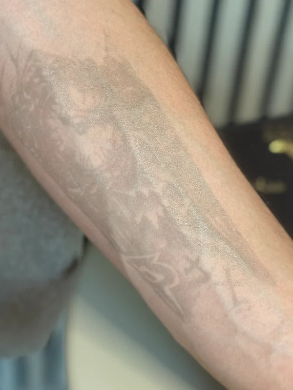 Exfoliez la zone où vous souhaitez appliquer le tatouage pendant 30 secondes. Laissez sécher complètement.